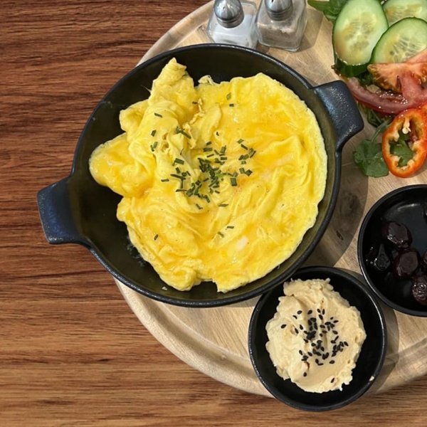 - 1001-Nacht-Platte mit Rührei, Käse, Gemüse & Dips