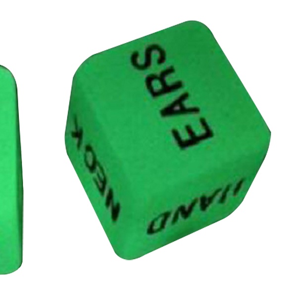 - Würfel B gibt einen Körperteil vor: Oberschenkel, Nabel, Hals, Ohren, Lippen, Hand