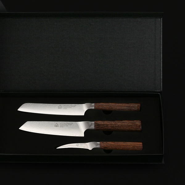 - Set-Umfang: 6'' Kochmesser + 5,5''Santokumesser + 2.75'' Tourniermesser