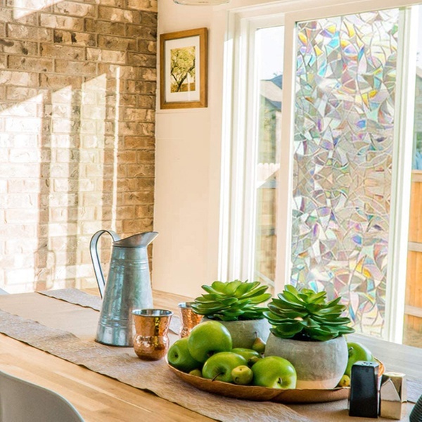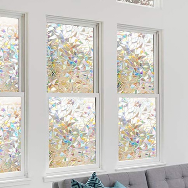 Diese transparente Fensterfolie mit unregelmäßigem 3D-Muster soll einen bunten visuellen Effekt zeigen, wenn das Sonnenlicht auf sie trifft