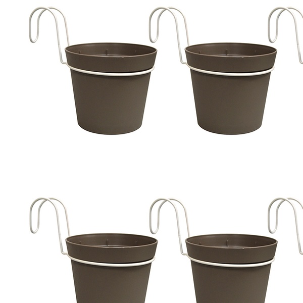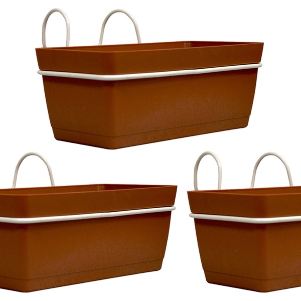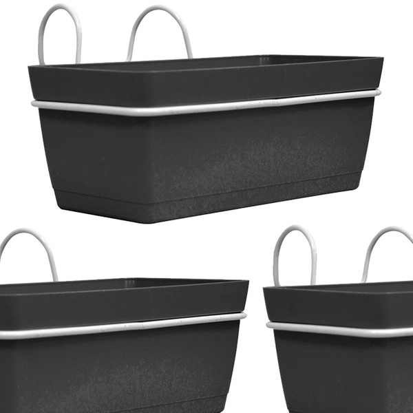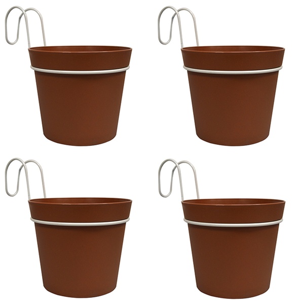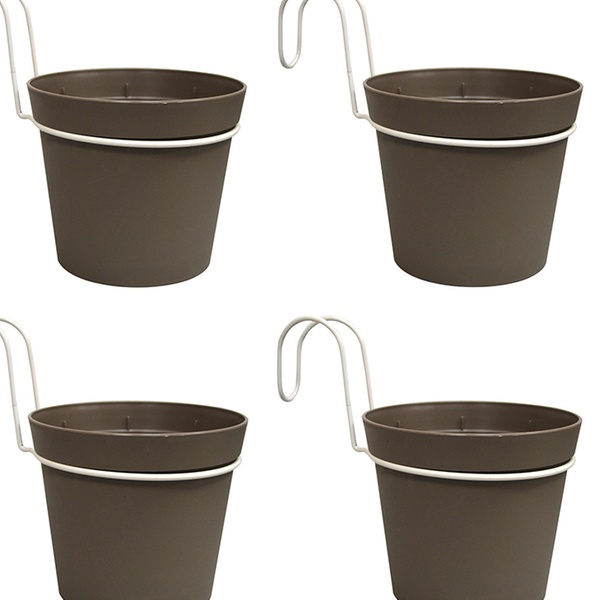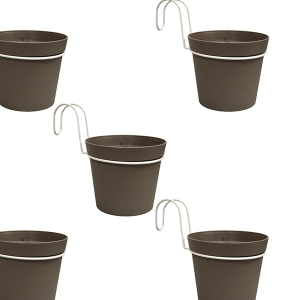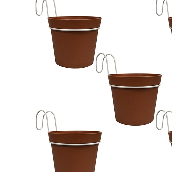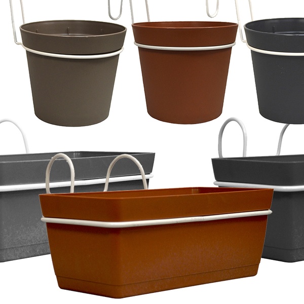 - Mit einer Halterung aus Eisen, um die Gefäße an einem Geländer, Netz oder mithilfe eines Kunstoffbands an einem Pfahl aufhängen kann