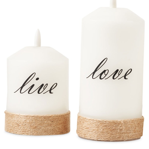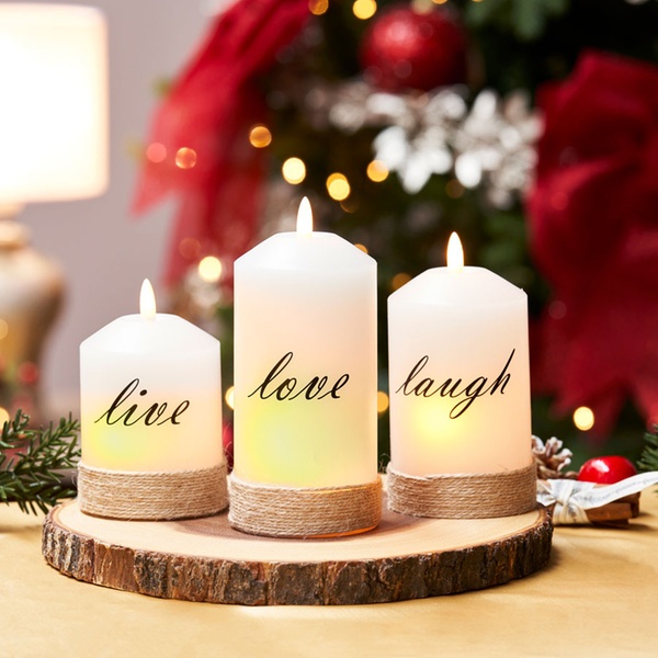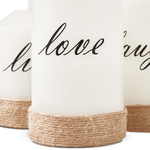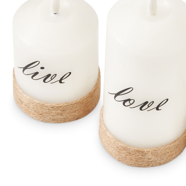 3er-Set ‘‘Live, Laugh, Love’’ LED Kerzen , vertrieben von AKJ Enterprises Ltd
