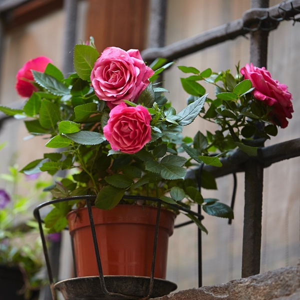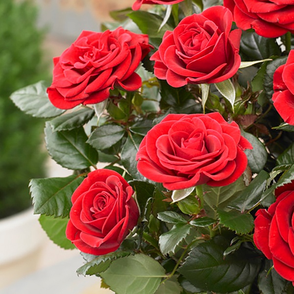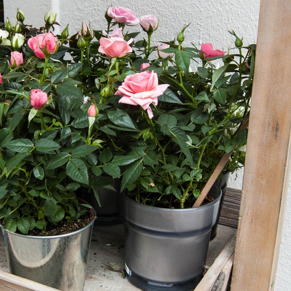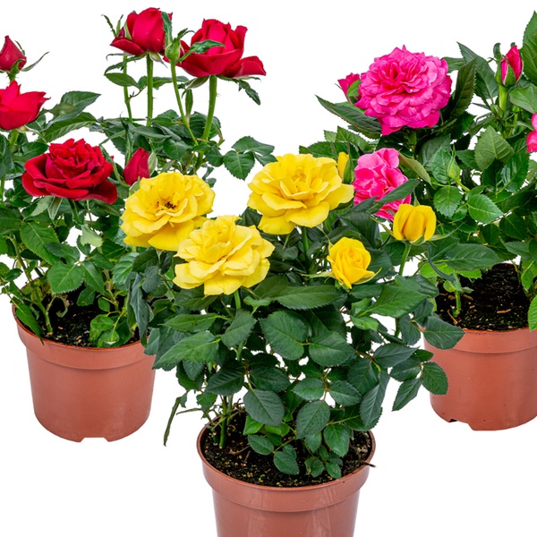 Kompakte, winterharte Topfrosen in drei diversen Farben für Innen- oder Außenbereich