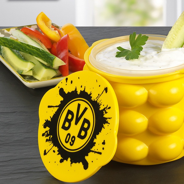 - Inkl. Deckel mit HSV- oder BVB-Logo und Füllbecher