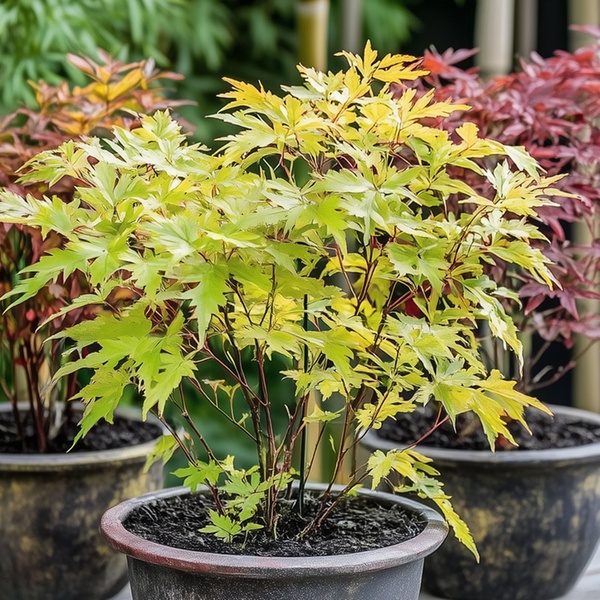 Winterharter Japanischer Ahorn mit bunten Blättern kann den Garten oder die Terrasse schön gestalten