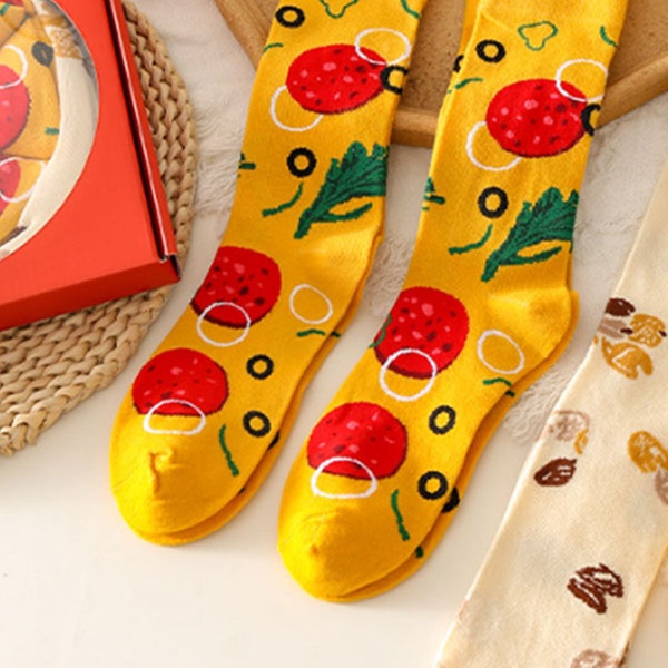 Diese Damen-Socken mit lustigem Pizza-Muster eignen sich für gemütliche Abende zu Hause und sorgen für ein angenehmes Tragegefühl bei verschiedenen Temperaturen