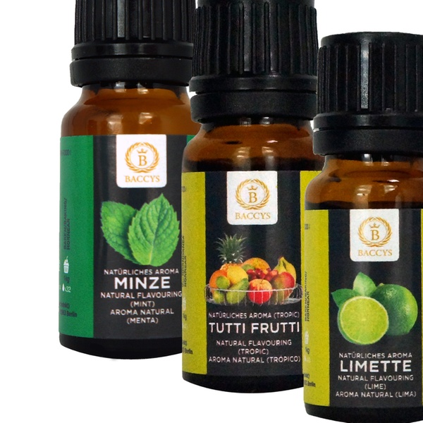 - Geschmack: Minze, Tutti Frutti, Limette, Kokosnuss und Kirsche