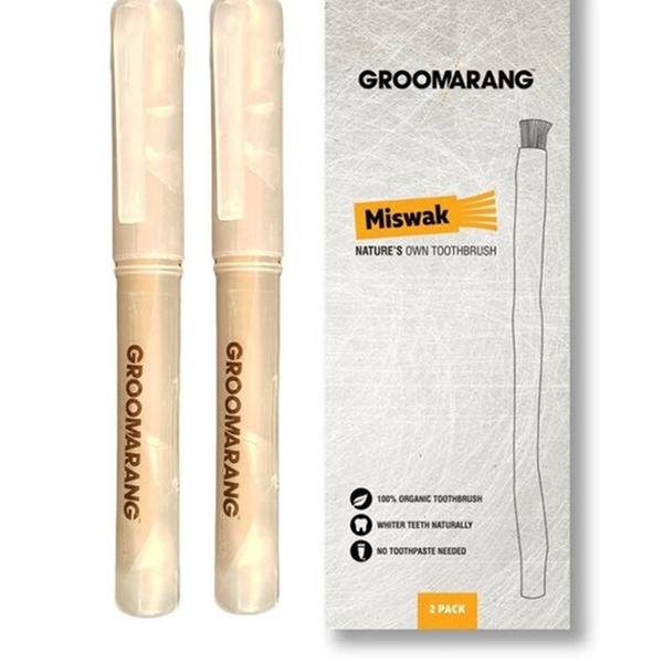 - In Wasser einweichen und ein Stück der Rinde vom Ende des Miswak abkauen bis es Borsten bildet