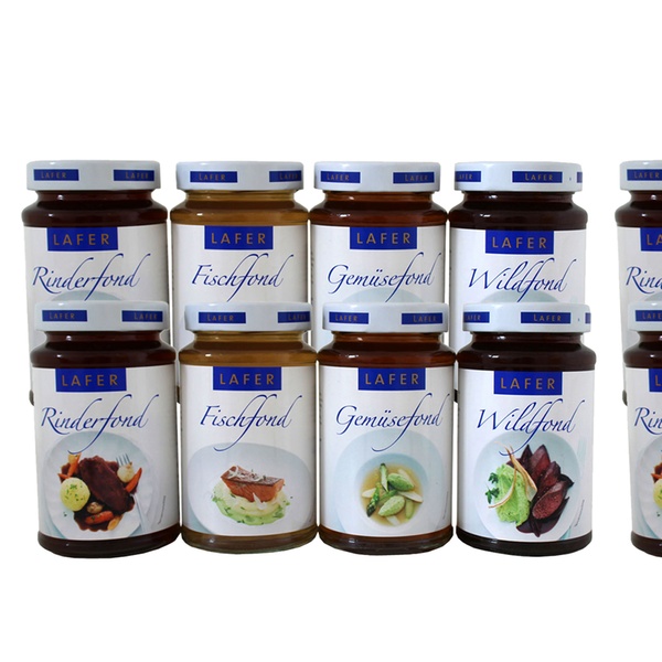 - 8er-Pack Lafer Fond: Probier-/Geschenkset L (4 Sorten je 2 Gläser) (Grundpreis: 0,69 € / 100 ml)