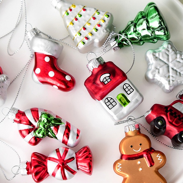 - Motiv: Weihnachtsbaum, Weihnachtshaus oder bunte Glas-Kugeln und Baumspitze