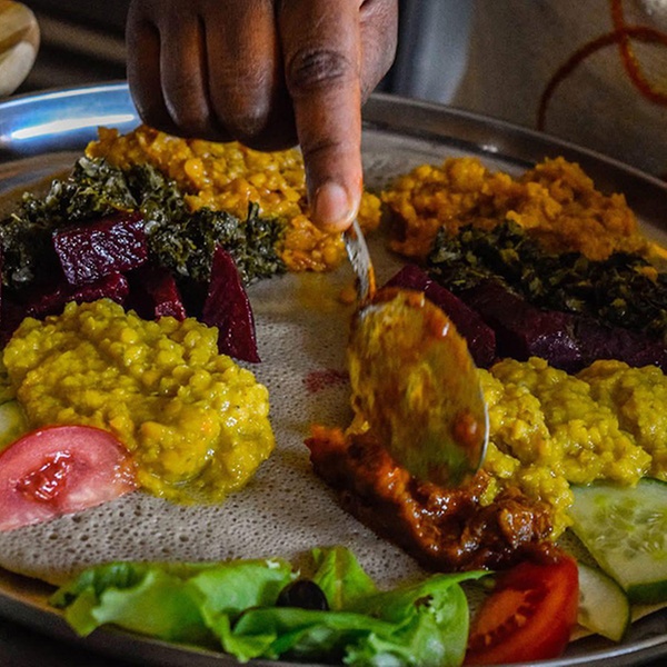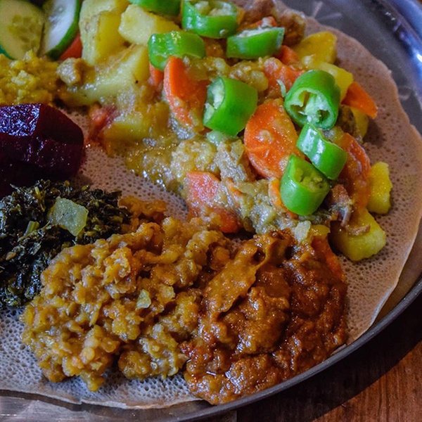 Dieses Angebot begeistert durch die authentische äthiopische Küche in einem einladenden, entspannten Ambiente. Du kannst vielfältige Spezialitäten probieren – serviert auf dem traditionellen Fladenbrot Injera, das gleichzeitig als Beilage und Besteck dient. Ob allein oder in Gesellschaft von Familie oder Freund*innen: Die Auswahl an vegetarischen, fleischhaltigen und glutenfreien Optionen macht den Besuch für alle attraktiv.
