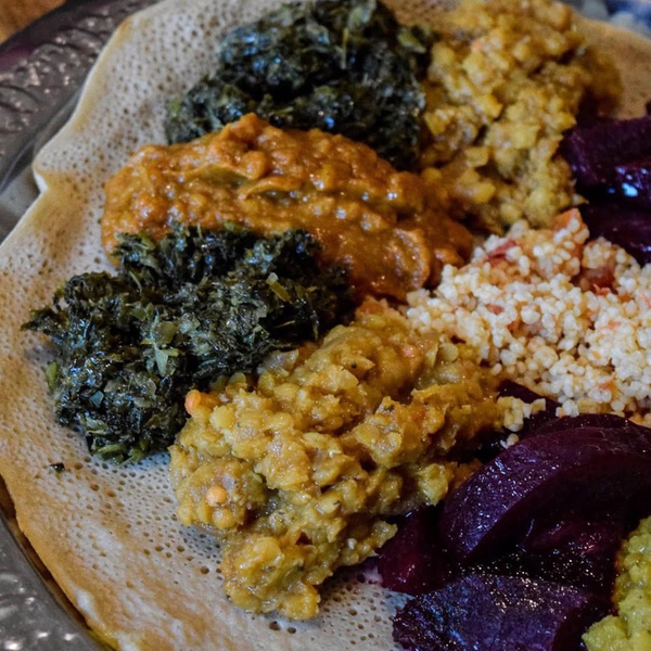 - Kalter Vorspeisenteller: Grünkohl, Rote Beete, Kartoffeln, Karotten, äthiopischer Frischkäse