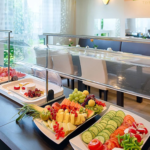 Stell dir ein Buffet vor, das mit frischen Farben und köstlichen Düften lockt. Knuspriges Brot, saftiges Obst, feine Aufstriche und warme Spezialitäten warten nur darauf, probiert zu werden. Dein Frühstück im ACHAT Hotel Chemnitz: frisch, vielfältig und der perfekte Start in den Tag.