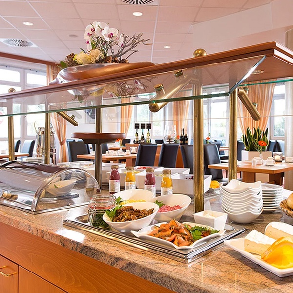 Das Frühstücksbuffet im ACHAT Hotel Schwarzheide Lausitz verwöhnt Gäste mit einer großen Auswahl an frischen Leckereien, Brot- und Brötchensorten, Wurst- und Käsevariationen sowie einer warmen Ecke mit Rührei und Bacon. Ein Glas Sekt für zwei oder vier Personen macht den Morgen zu einem besonderen Erlebnis.