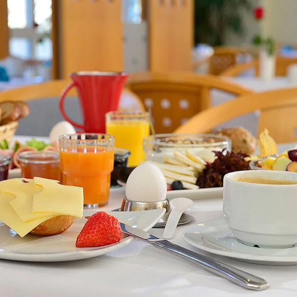 - Für 2 oder 4 Personen: Frühstücksbuffet inkl. 1 Glas Sekt