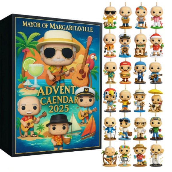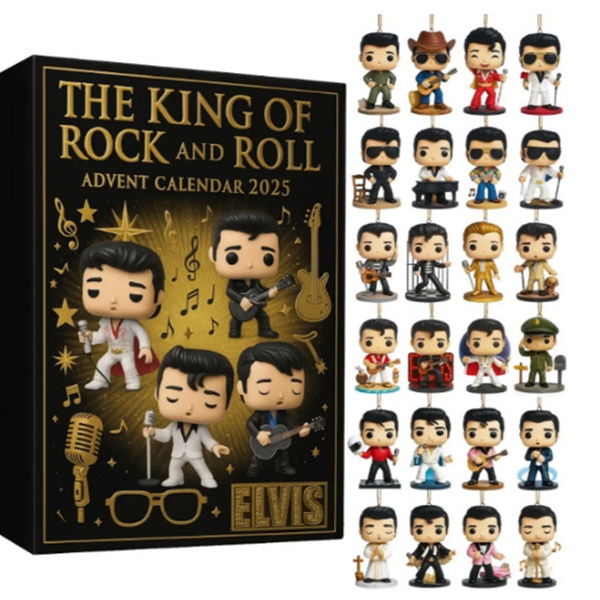 Adventskalender 2025 mit 24 einzigartigen Elvis- oder Mayor of Margaritaville-Figuren, bunt gestaltet zum Dekorieren oder Sammeln