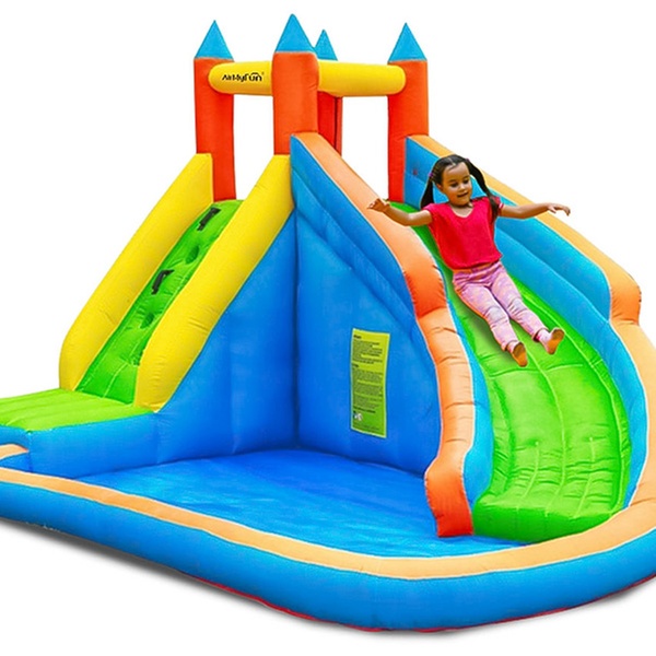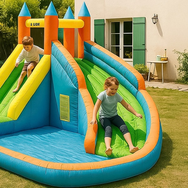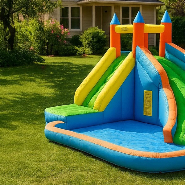Die Hüpfburg bietet eine aufregende Rutsche und einen Planschbereich für grenzenlosen Spielspaß im Garten