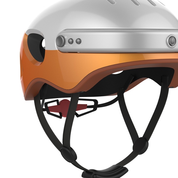 Stabiler schützender Fahrradhelm mit integrierter Kamera, Kopfhörer, Bluetooth und WiFi Verbindung zur Übertragung von Fotos und Videos