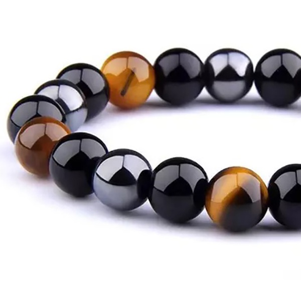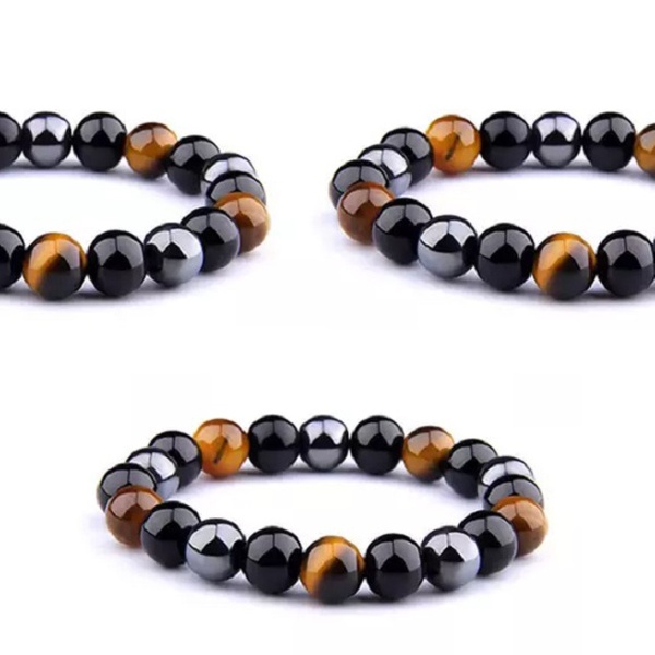 Ein zweifarbiges Hämatit-Armband, welches durch stimulieren der Akupressurpunkte Einfluss auf Gewichtsmanagement haben kann
