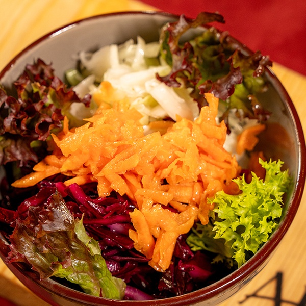 - Almsalädchen: Feiner Krautsalat, Rotkohl, Weißkohl & Karotte mariniert mit unserem Hausdressing