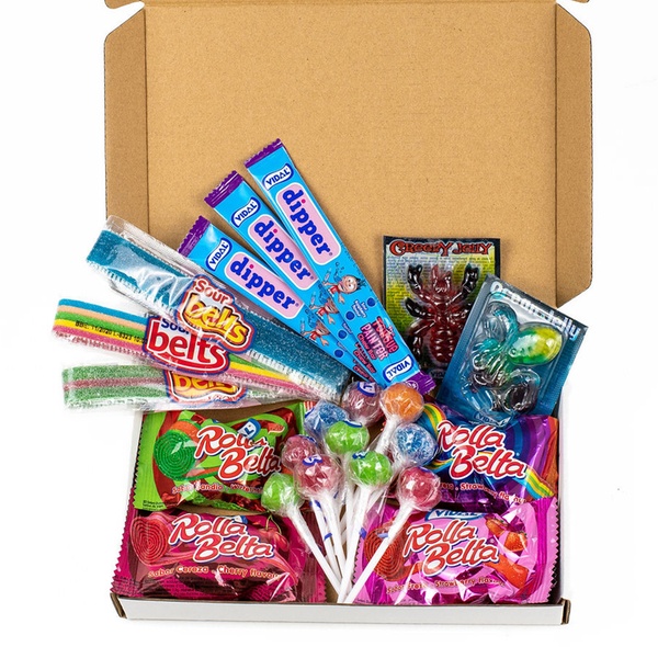 Gemischte Box mit amerikanischen Süßigkeiten zum Probieren neuer Geschmacksrichtungen, Kindergeburtstage oder als Geschenk