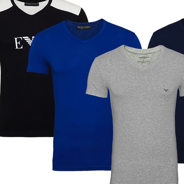 Ein lockeres Armani T-Shirt für Herren mit V-Ausschnitt und dezentem Markenlogo