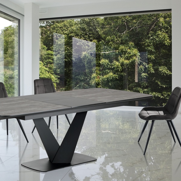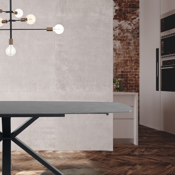 Ein eleganter Esstisch mit ausziehbarer Tischplatte im modernen Design