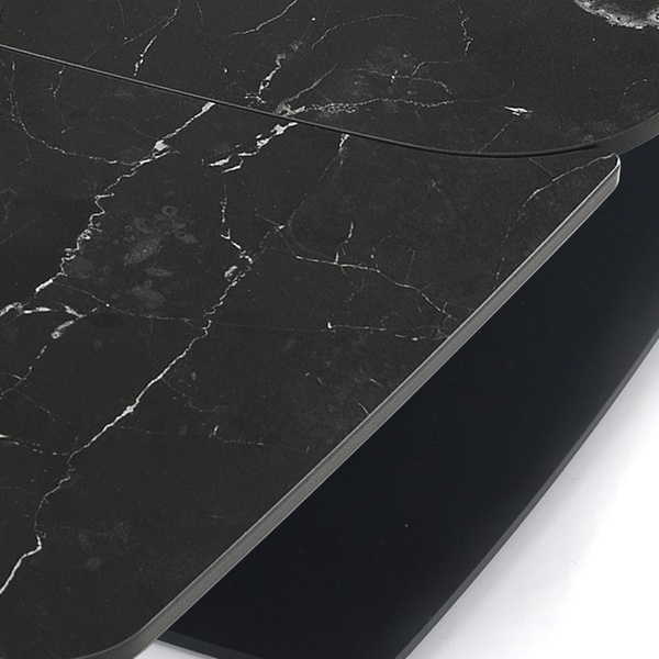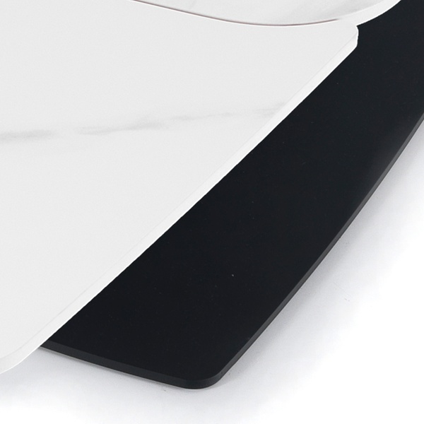 • Der Rand der Tischplatte ist Mattschwarz lackiert