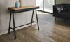 Die Konsole ist aus Holz-Mikropartikeln mit anthrazit lackiertem Eisen gefertigt, schlicht gestaltet und lässt sich von 90 cm auf bis zu 3 m ausziehen, stabil durch praktische Lateralstützen