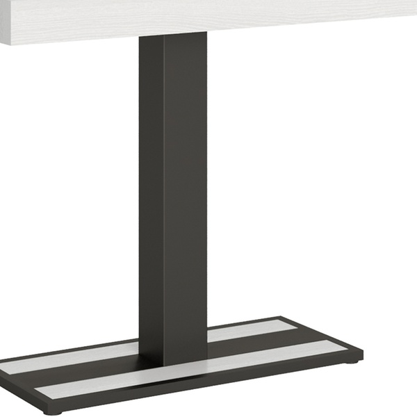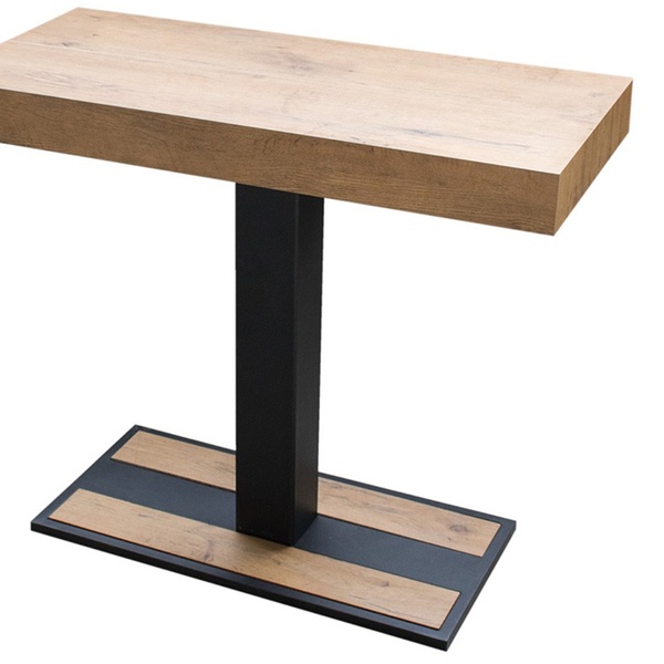 - Zwei Holzplatten auf dem Metallfuß in der gleichen Farbe wie die Tischplatte