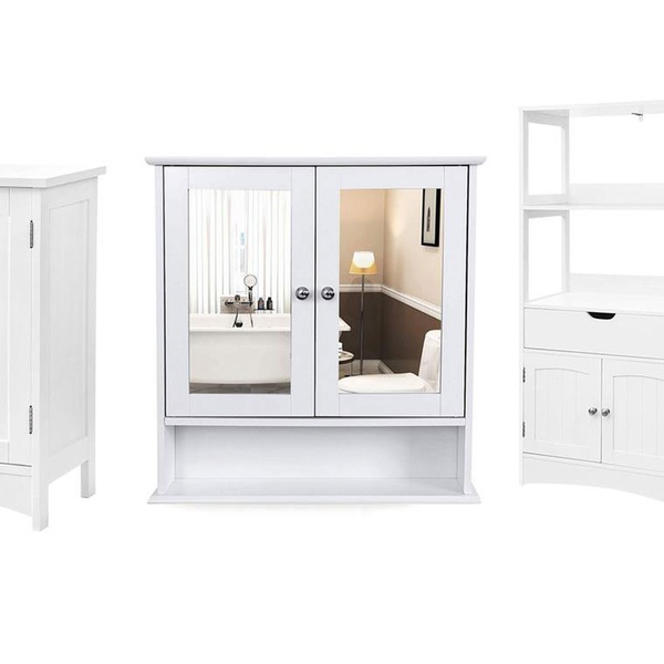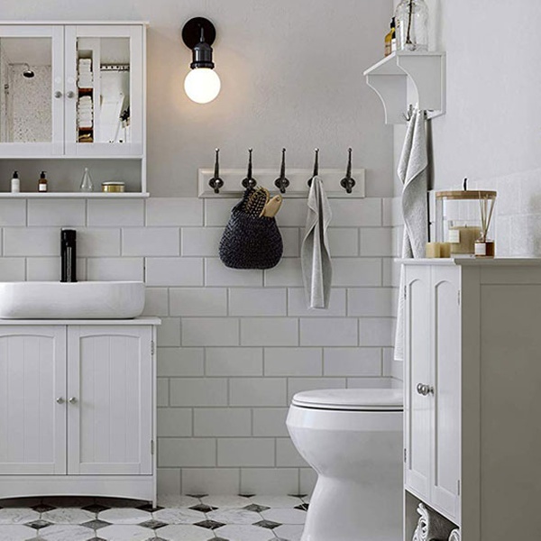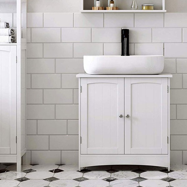 Diese Badezimmermöbel aus hochwertigen MDF-Platten hergestellt und weiß lackiert für bessere Feuchtigkeitbeständigkeit