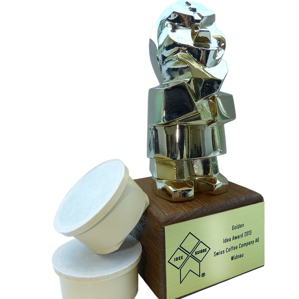 Seit 2011 engagiert sich die Swiss Coffee Company AG in der Entwicklung kompostierbarer Kaffeekapseln. Das mit dem Golden Idea Award 2013 ausgezeichnete Produkt ermöglicht die Kombination von säurearmem Kaffeegenuss mit Nachhaltigkeit: Nicht nur der Kaffee wird fair gehandelt und kommt zudem noch aus nachhaltig biologischem Anbau; auch die Kapseln lassen sich über Kompostierung wieder dem Öko-Kreislauf zuführen. Geröstet wird der importierte Rohkaffee ebenfalls in der Schweiz im schonenden Langröstverfahren.