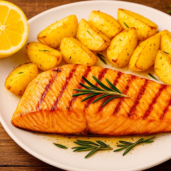 - Lachsfilet, Wolfsbarsch oder gegrillte Dorade