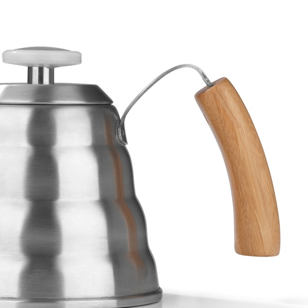 Wasserkessel aus rostfreiem Edelstahl hat Thermometer, Schwanenhals und edlen Bambusgriff