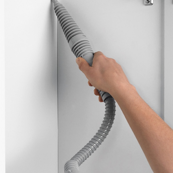 - Accessoires: Messbecher, Trichter, flexibler Verlängerungsschlauch, 3 runde Kunststoff-Bürsten, Mini-Mopp-Aufsatz, abgewinkelte Düse