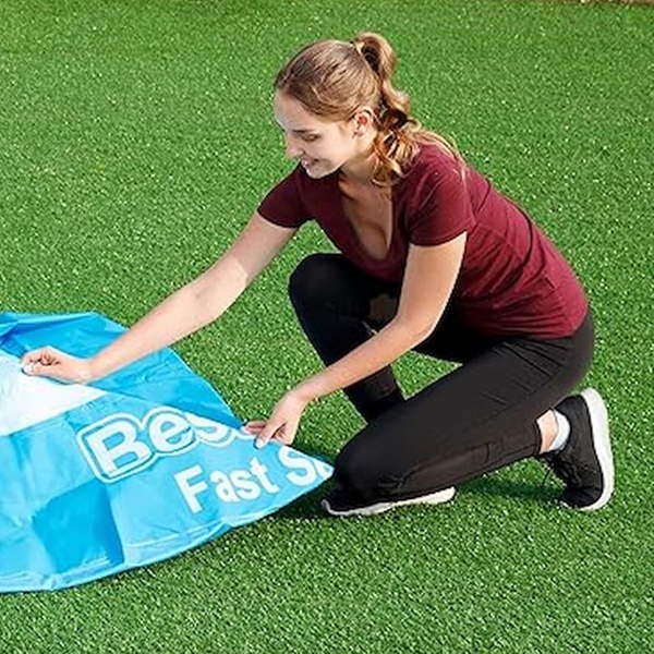- Leicht aufzublasen (per Mund oder Pumpe), schnell aufgebaut, platzsparend zu verstauen
