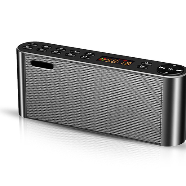 Edler Bluetooth-Lautsprecher im Metalli- Design mit Radio Funktion und digitalem Display in kompakter Größe