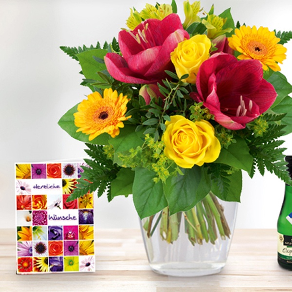 Farbenprächtige Blumensträuße mit Lieferung zum Wunschtermin inkl. Alpenvollmilchschokolade von Lindt, prickelndem Prosecco und Grußkarte