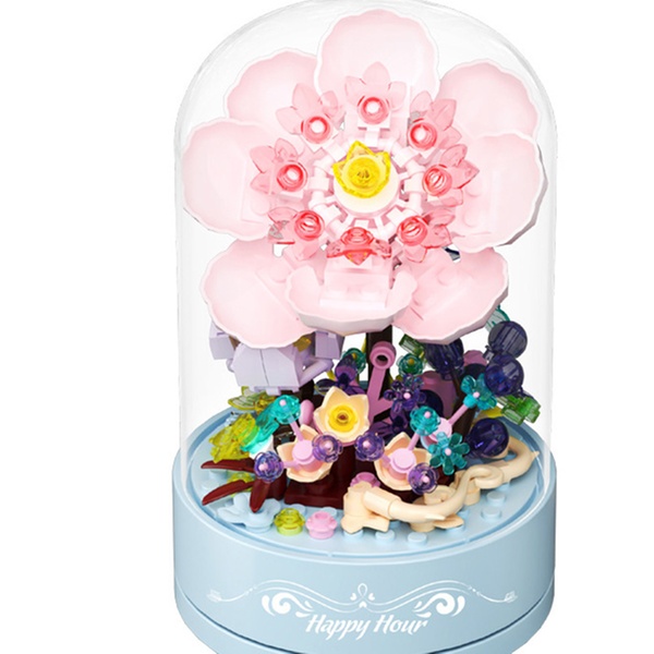 Dieser Blumenstrauß-Bausatz kommt mit einer Musikbox, die melodische Klänge spielt und eine traumhafte Atmosphäre schafft