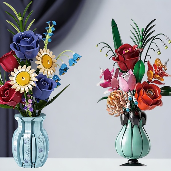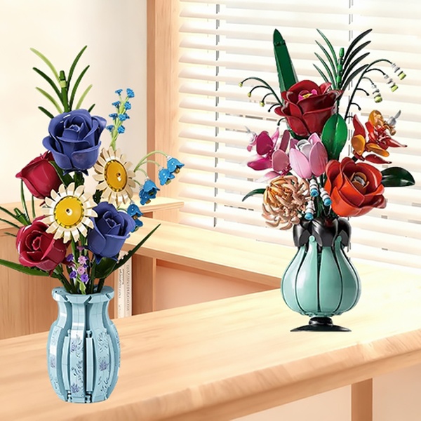Blumenstrauß-Baustein-Set mit Vase im Modell nach Wahl