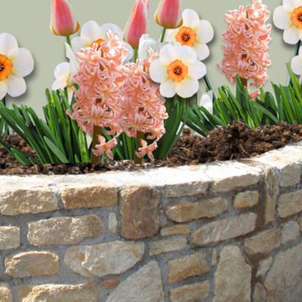 Diese Zwiebelmischungen bringen im Frühling leuchtende Blüten in Weiß-, Pfirsich- oder Rosatönen in Ihr Beet, sind pflegeleicht und geeignet für sonnige Gärten und Beete