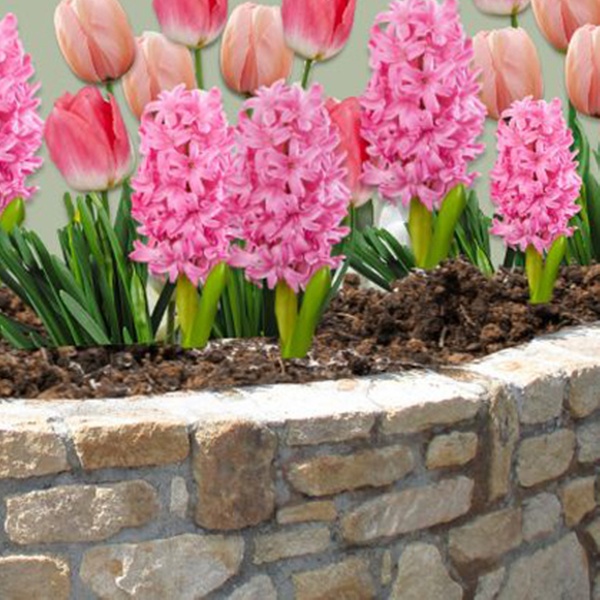 - Color your garden Pink Blush: Tulipa Salmon Impression, Tulipa Dynasty, Hyacinthus Pink Pearl