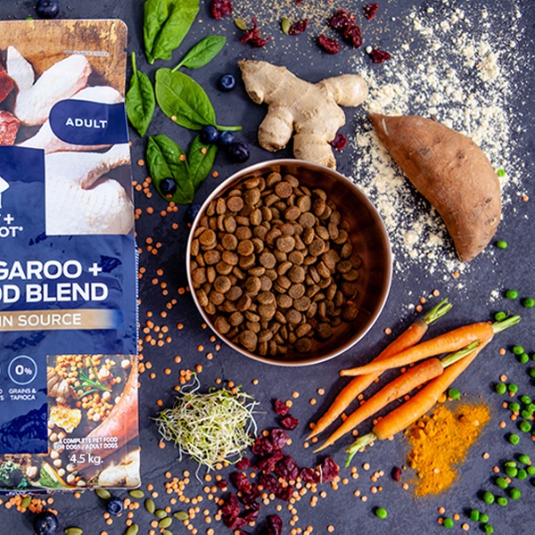 Inhaltsstoffe Känguru Adult Frisch zubereitetes Känguru (25%), dehydriertes Huhn (19%), Süßkartoffel * (20%), Erbsen (9%), Kichererbsen * (7%), Linsen * (6%), Erbsenprotein (5%) , Hühnerfett * (5%), hydrolysiertes Gemüse * (1%), Mineralien * (0,9%), Luzerne * (0,5%), Leinsamen * (0,5%), Kokosöl * (0,5%), Zichorienwurzel * ( 0,14%), Manuka-Honig * (0,05%)