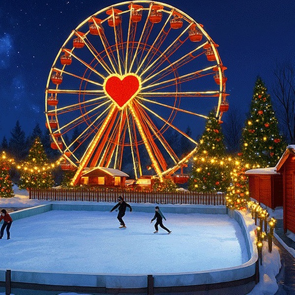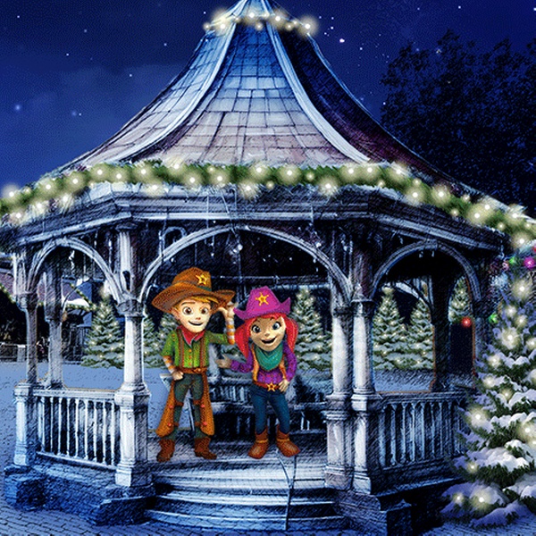 Erlebe einen magischen Freizeitpark im winterlichen Glanz mit Lichtershows, Eislaufbahn, Weihnachtsdorf und spektakulären Winterattraktionen