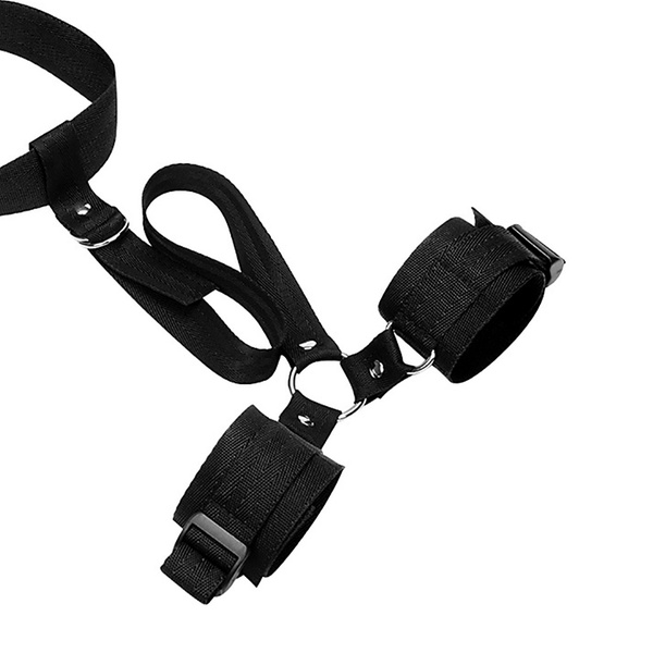 Eine strapazierfähige Bondage-Fessel mit Handschellen und Halsband für kreative Positionen und Rollenspiele im Schlafzimmer