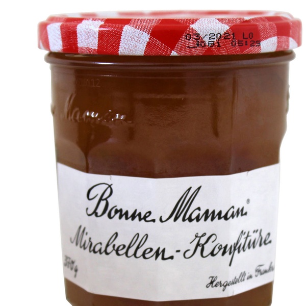 Inhaltsstoffe: Mirabellen, Zucker, brauner Rohrzucker, Zitronensaftkonzentrat, Geliermittel: Pektin (Citrus)