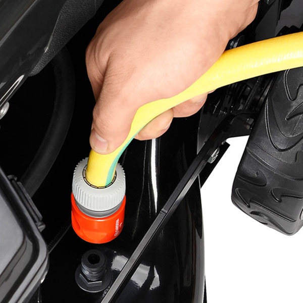 - Easy-Clean-Reinigungssystem: Wasseranschluss für automatisches Reinigen des Innengehäuses und Schneidwerks, passend für jeden Gartenschlauch