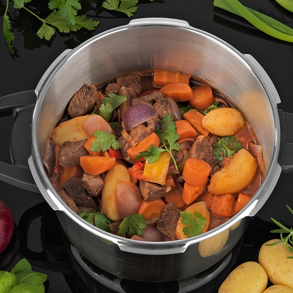 - Zwei wählbare Dampfdruckstufen dür schnelleres garen als im herkömmlichen Kochtopf