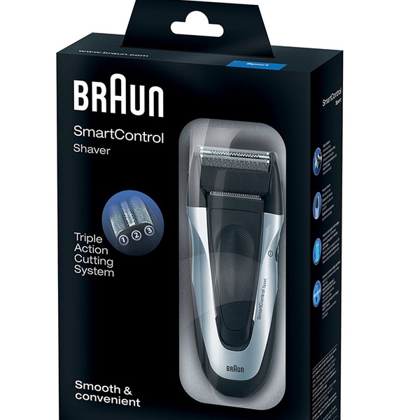 Der Braun SmartControl Rasierer sorgt dank doppelter Scherfolie und integriertem Präzisionstrimmer für eine schnelle Rasur