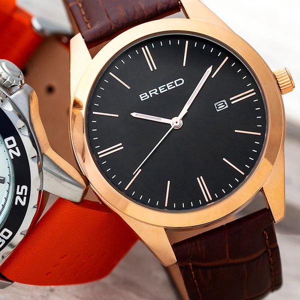 - BRD7906: Gehäuse: Roségold / Armband: Braun / Zifferblatt: Schwarz